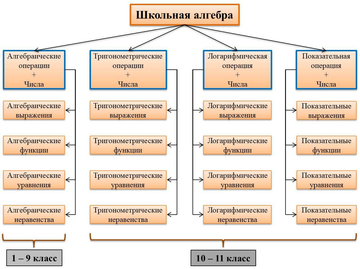 В программу алгебры 11 класса входят темы: функции, производные функции, интегралы и приложения к ним, уравнения и неравенства, векторы, матрицы и определители, комбинаторика и теория вероятности.
